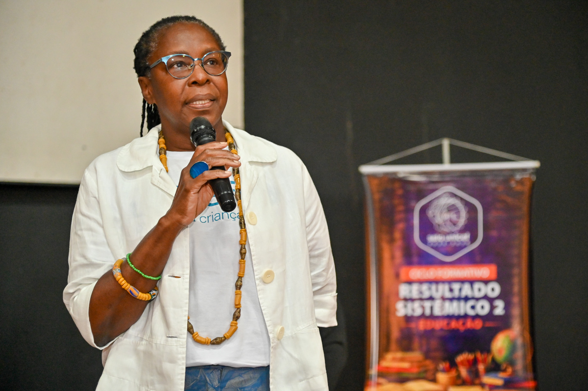 Daniela Rocha, oficial de Educação do UNICEF, destacou as estratégias adotadas para alcançar melhores resultados na garantia de direitos de crianças, adolescentes e jovens: “Estamos convocando os municípios a trabalharem de forma sistêmica, iniciando pelo eixo da Busca Ativa Escolar e da conectividade, que visa garantir o acesso, a permanência e internet de qualidade nas escolas. No entanto, não basta estar na escola sem aprender. Por isso, estabelecemos o eixo dois, de aprendizagem com qualidade e equidade, que propõe um conjunto de práticas a serem desenvolvidas pelos municípios, como ações voltadas à educação infantil, com apoio do INDIQUE (Indicador de Qualidade da Educação Infantil), iniciativas de alfabetização, recomposição das aprendizagens e educação que protege contra as violências. E avançamos com o eixo três, voltado à transição positiva da escola para o mundo do trabalho. A proposta da formação é justamente alinhar e integrar todas essas estratégias, para que os municípios compreendam seu valor de forma articulada e atuem de maneira mais eficiente e consistente”, afirmou.