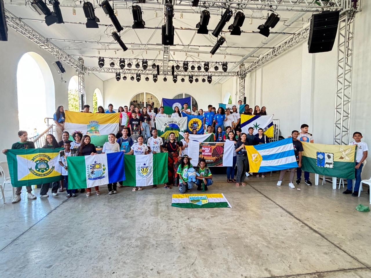 Fortaleza sediou, no dia 23 de abril de 2026, o encontro presencial do Núcleo de Cidadania de Adolescentes (NUCA) do Ceará, com o tema “Clima e Saúde Mental – Cuidar da Terra é Cuidar de Nós”. A programação reuniu adolescentes e mobilizadores de 34 municípios participantes do Selo UNICEF - Edição 2025-2028, totalizando 131 participantes, em um dia dedicado a diálogos, formações e fortalecimento de vínculos.